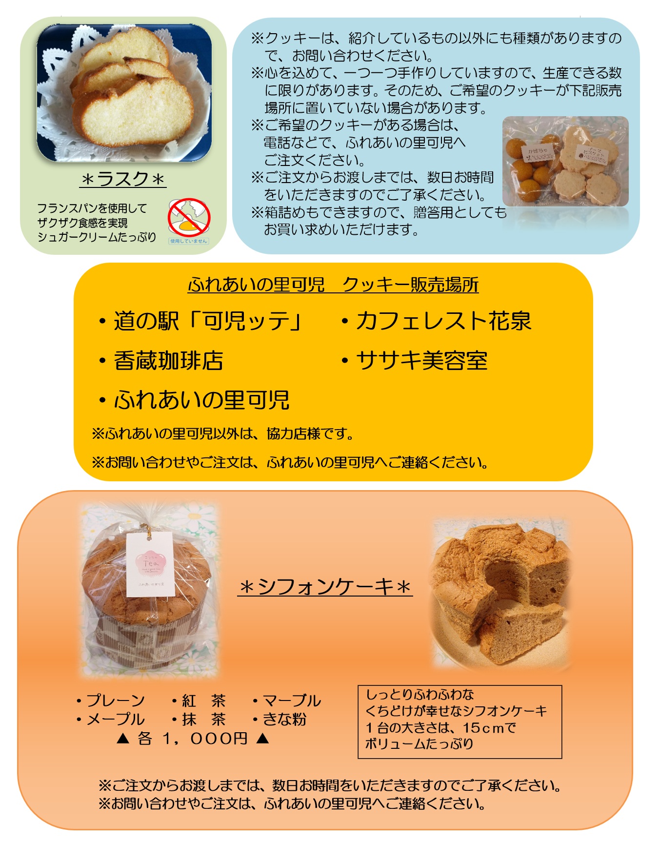 当施設では、お客様にできる限り低価格で手作りのお菓子を食べていただけるように努めてまいりましたが、昨今の原材料費高騰の影響により、価格を維持することが困難になりました。そのため、誠に心苦しいですが、令和7年10月より焼き菓子の価格を改定させていただきました。